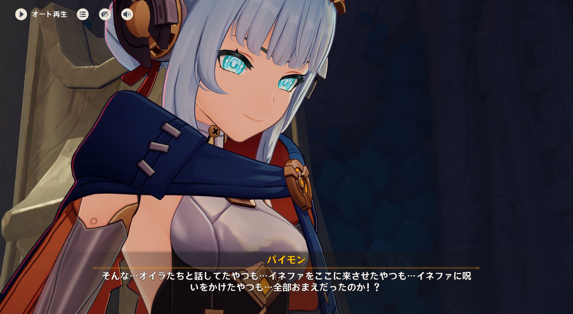 ・イネファって神の目ついてなかったんだ!? だからキャラ画面ひらけなかったんだ〜、というかナタで手に入れてもナドクライ仕様になるの? じゃあなんで放浪者はスメール仕様なんですか!? 帰る場所ってこと? じゃあお父様はなんでスネージナヤなんすか! さあ……?