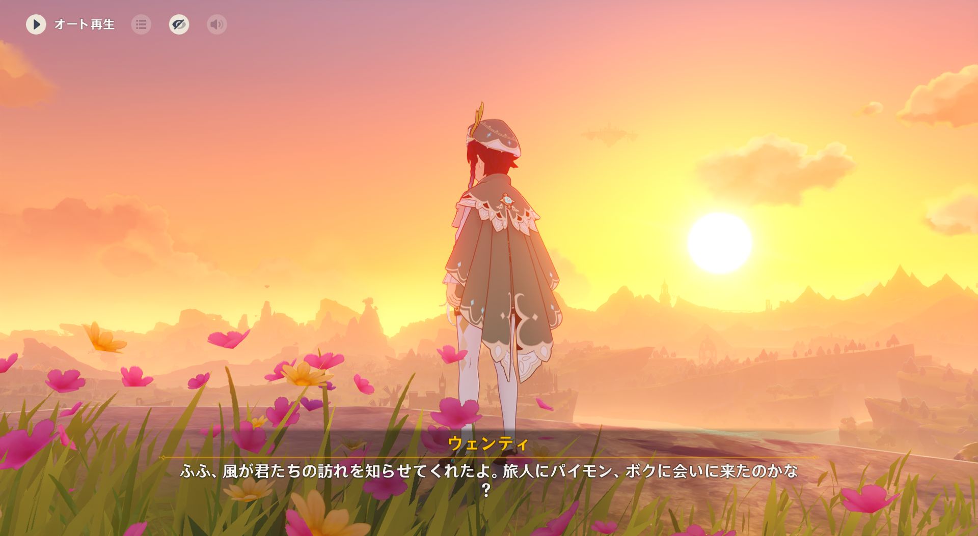 あとウェンティさんが安定のモンドの人々を見守る風神さましつつ手を貸してくれてて、ほんとに、うれしかった……最高……背理、ありがとう。理に背いて大丈夫ですか!?