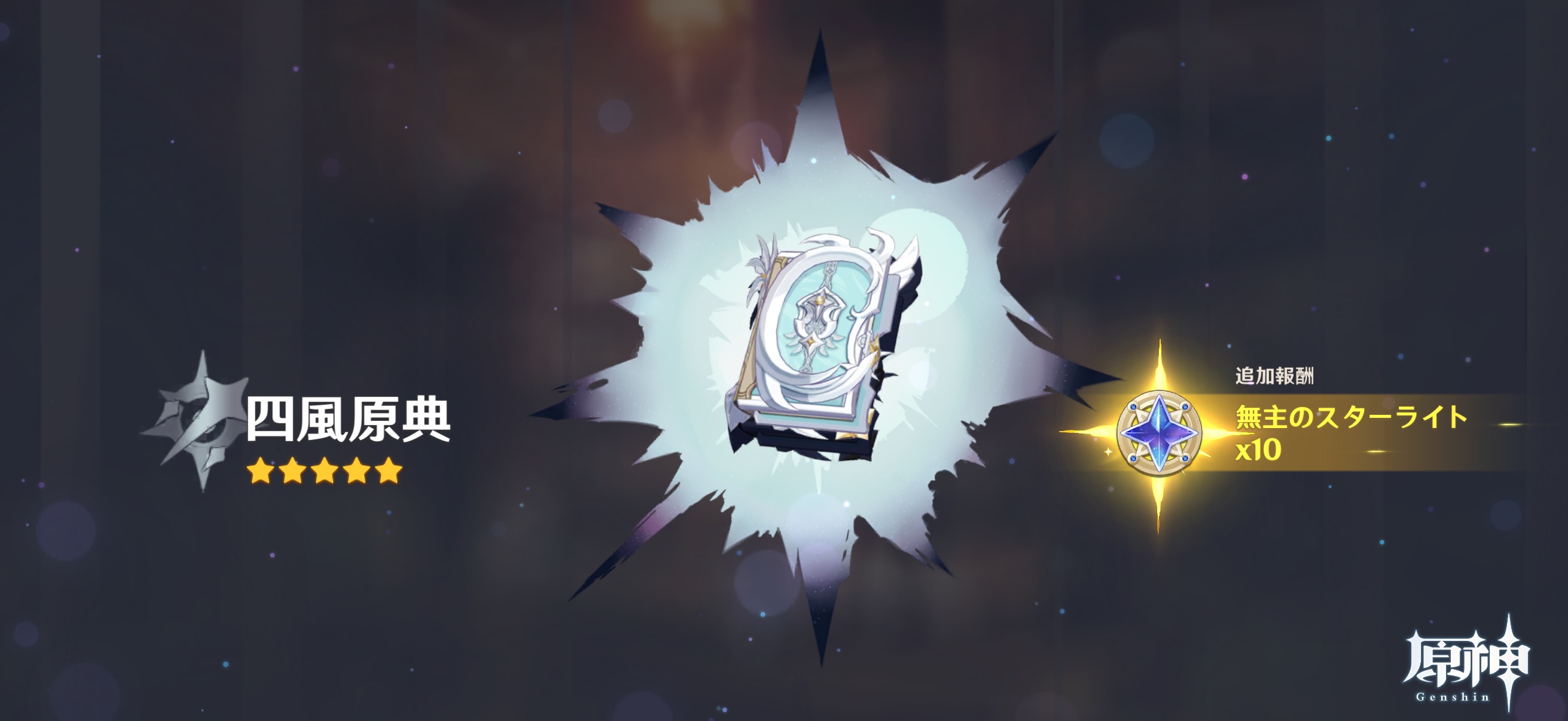 #genshin 寝る前に恒常石使おうと思ったら四風原典きたが!?!? え!? やったー!