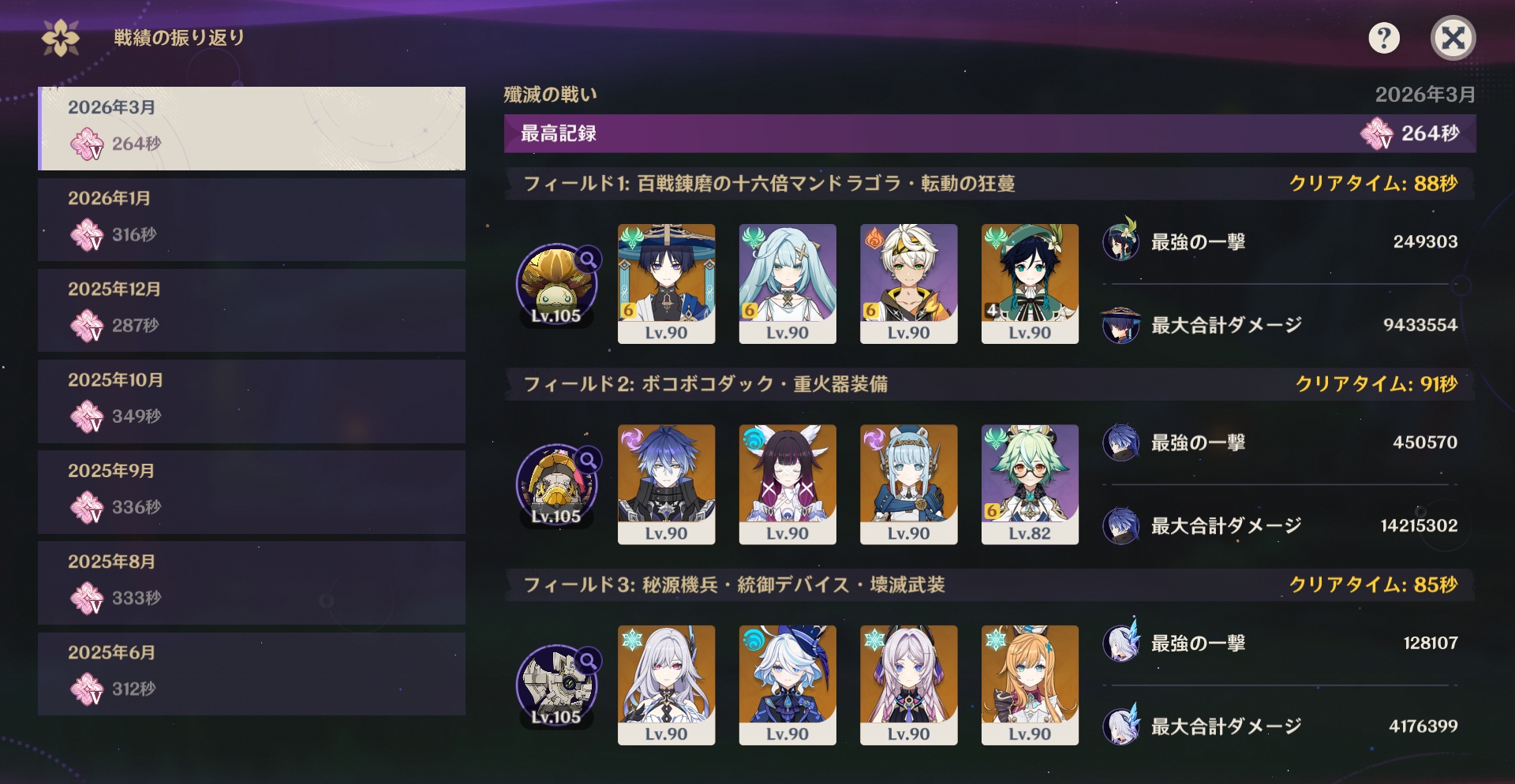 #genshin 幻想シアター用育成状況メモ