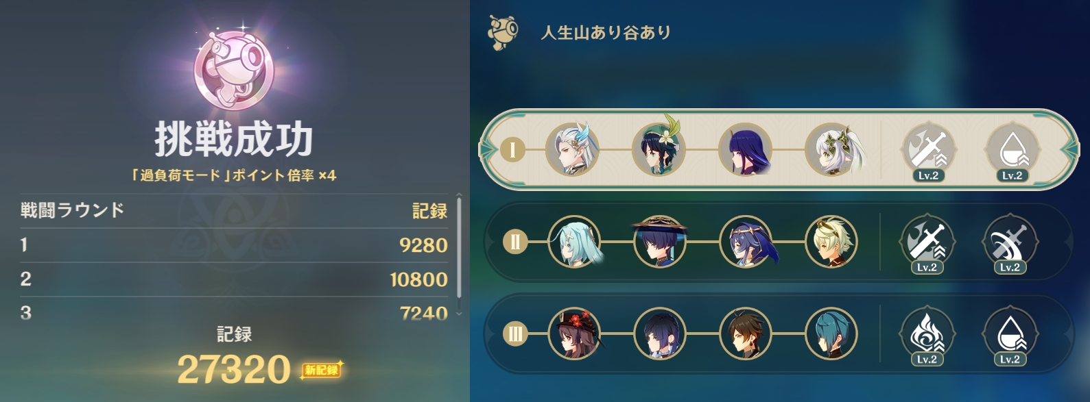 片面で無凸金珀ヌヴィレット単騎チャレンジしたんだけど星35だった 12-3後半、結構回避タイムに時間取られちゃって……攻撃する暇が…… それにしたって攻撃範囲のおかげで敵と距離取りやすいし、攻撃中するする動いてくれるから避けやすいし、HPどかっと持ってかれても超回復してくれるから ほんとすごい動かしやすいキャラクターだな〜 さすが水の龍王だぜ……!