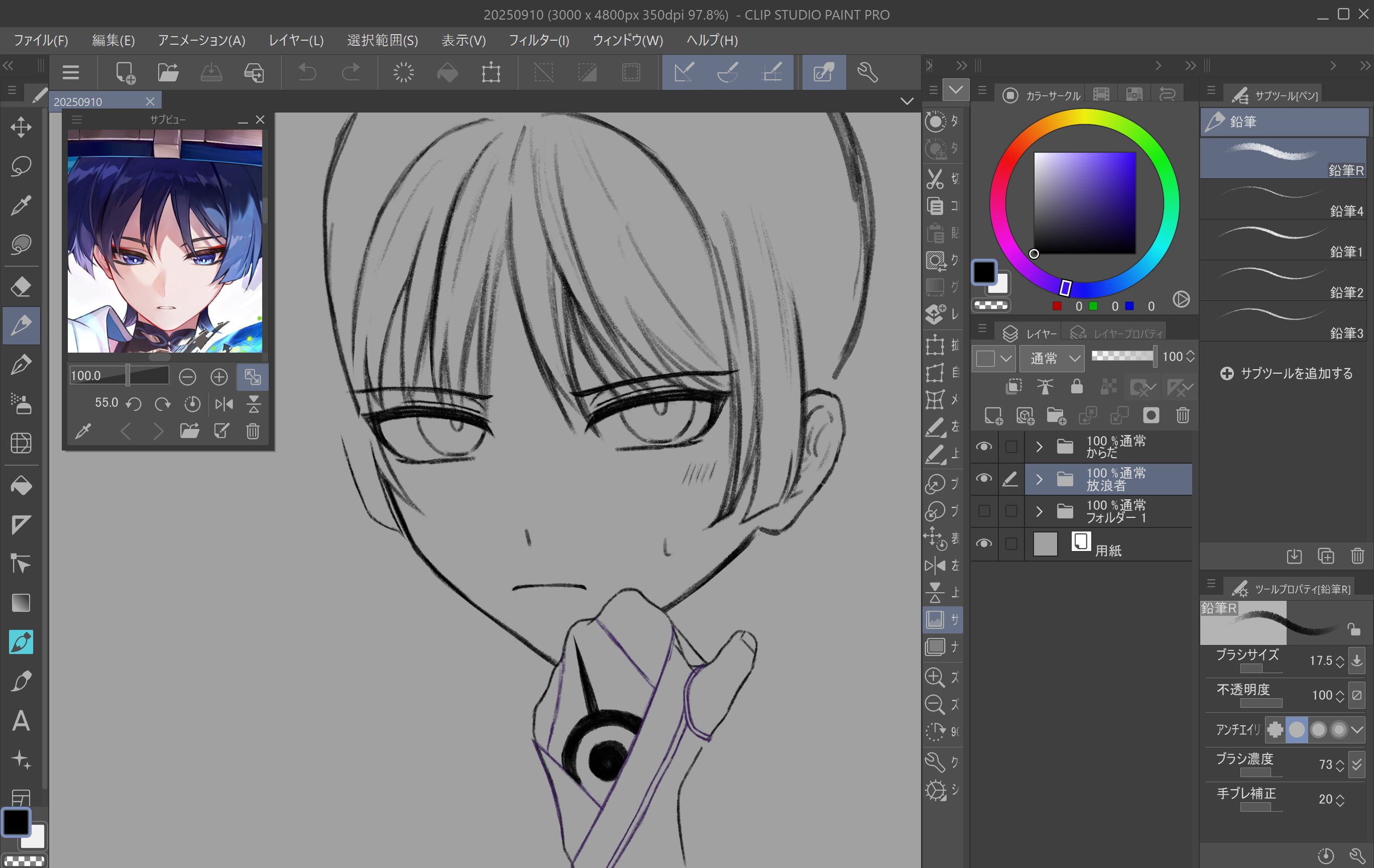 でもここまで描けたら割と満足で……顔だけで満足しちゃうから体がこうもダメなんすよ! く〜ん……
