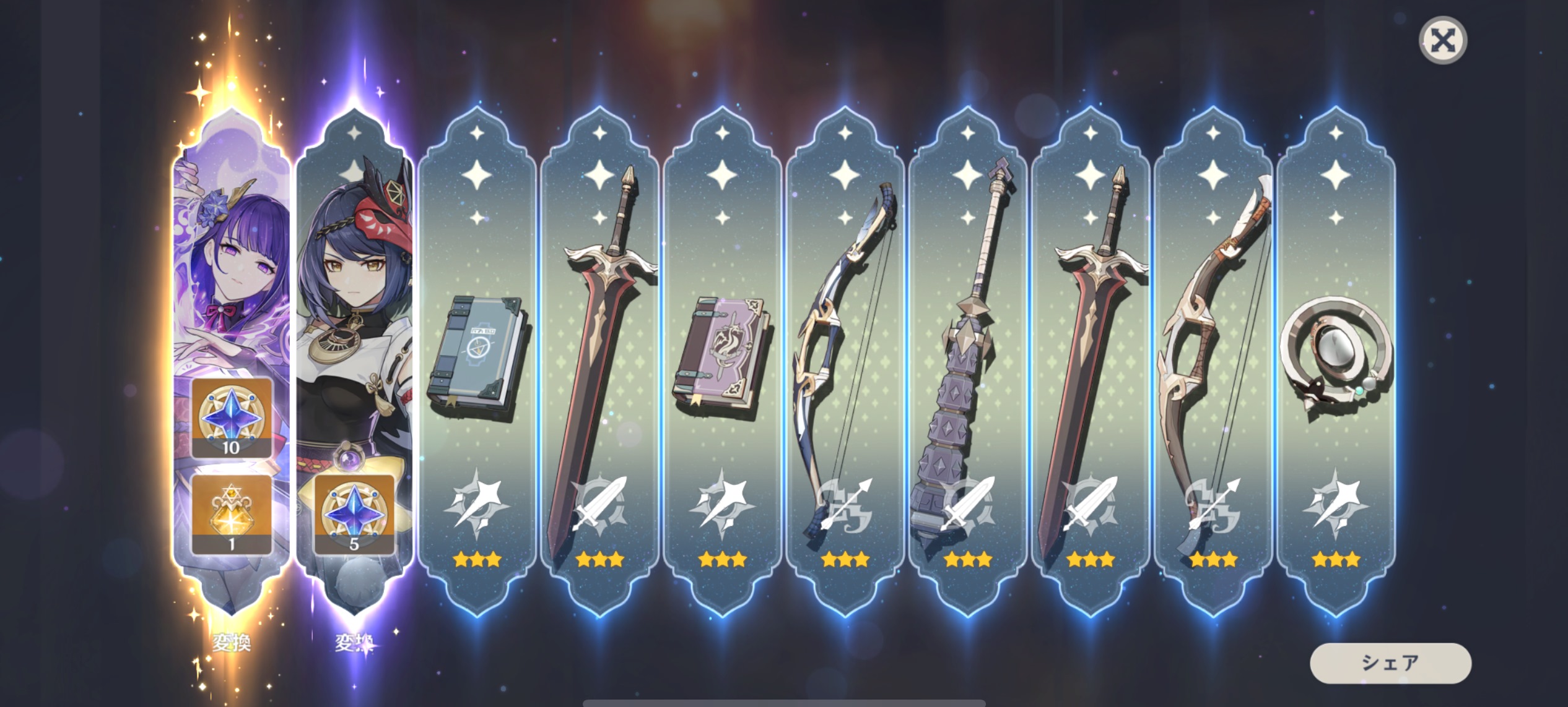 #genshin ア!?!? 10連で来ることあるんだ………… 影ちゃん、もしかしたらおれのことすきなのかも(?) うれしいね はやく2凸したいぜ(50連して胡桃……と我に帰った) game 2023/01/07