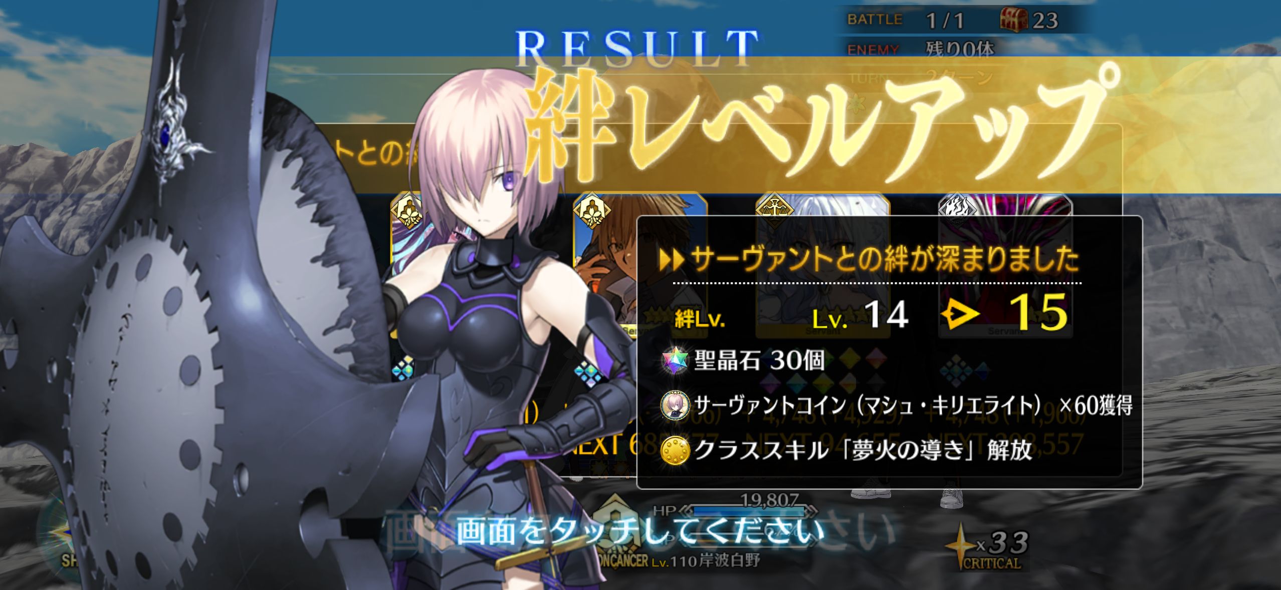 マシュの絆15にしてパーフェクト後輩にするんだ🎶の気持ち。他は14で止めとくかなあ……