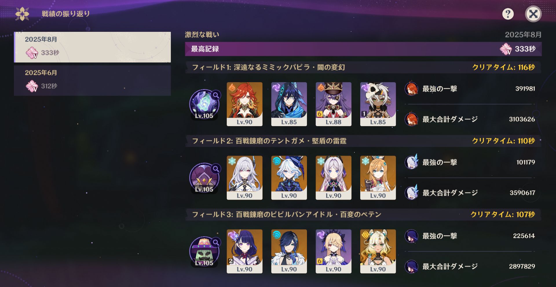 #genshin 幽境エクストラ、調べた通りの編成組んで無の境地で繰り返し挑んでたらなんか行けた。なんで行けたんだろう(え?)