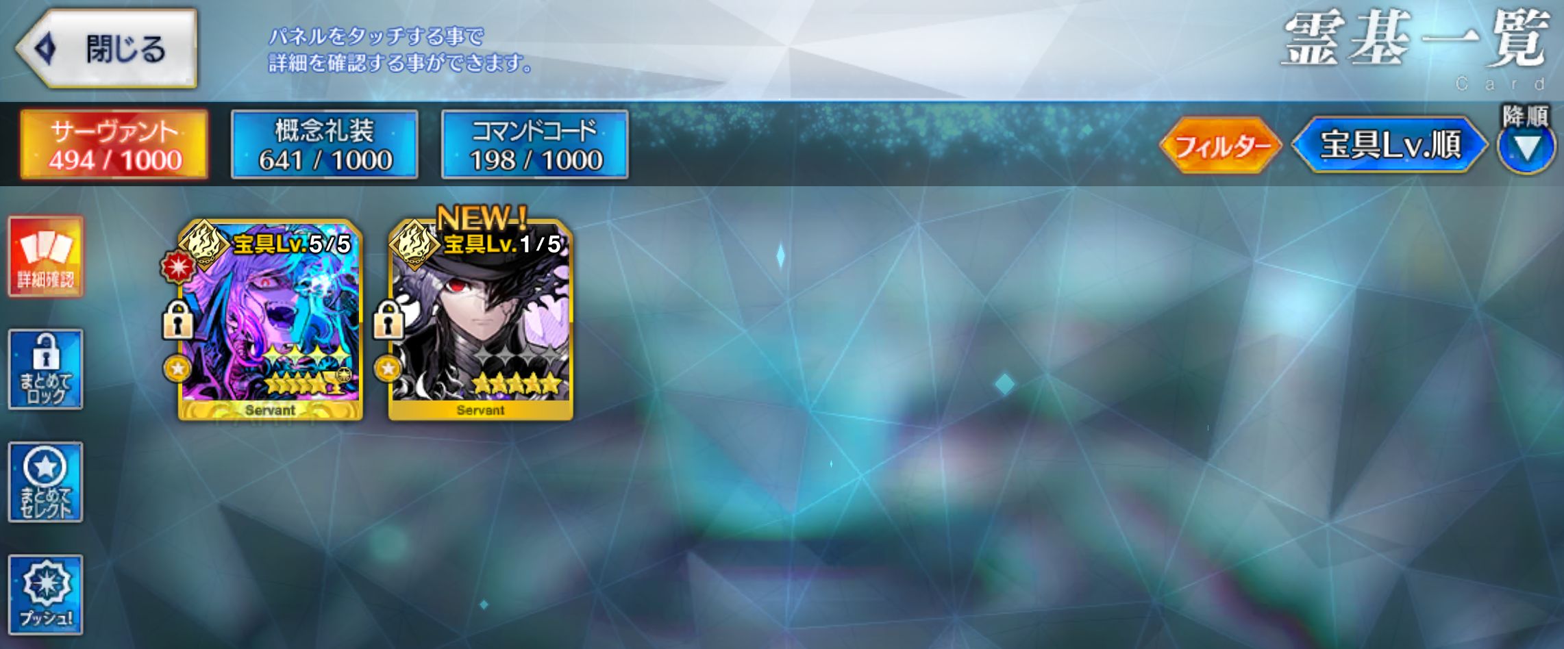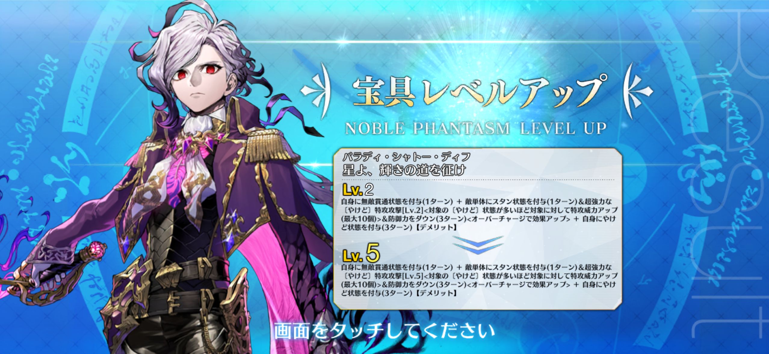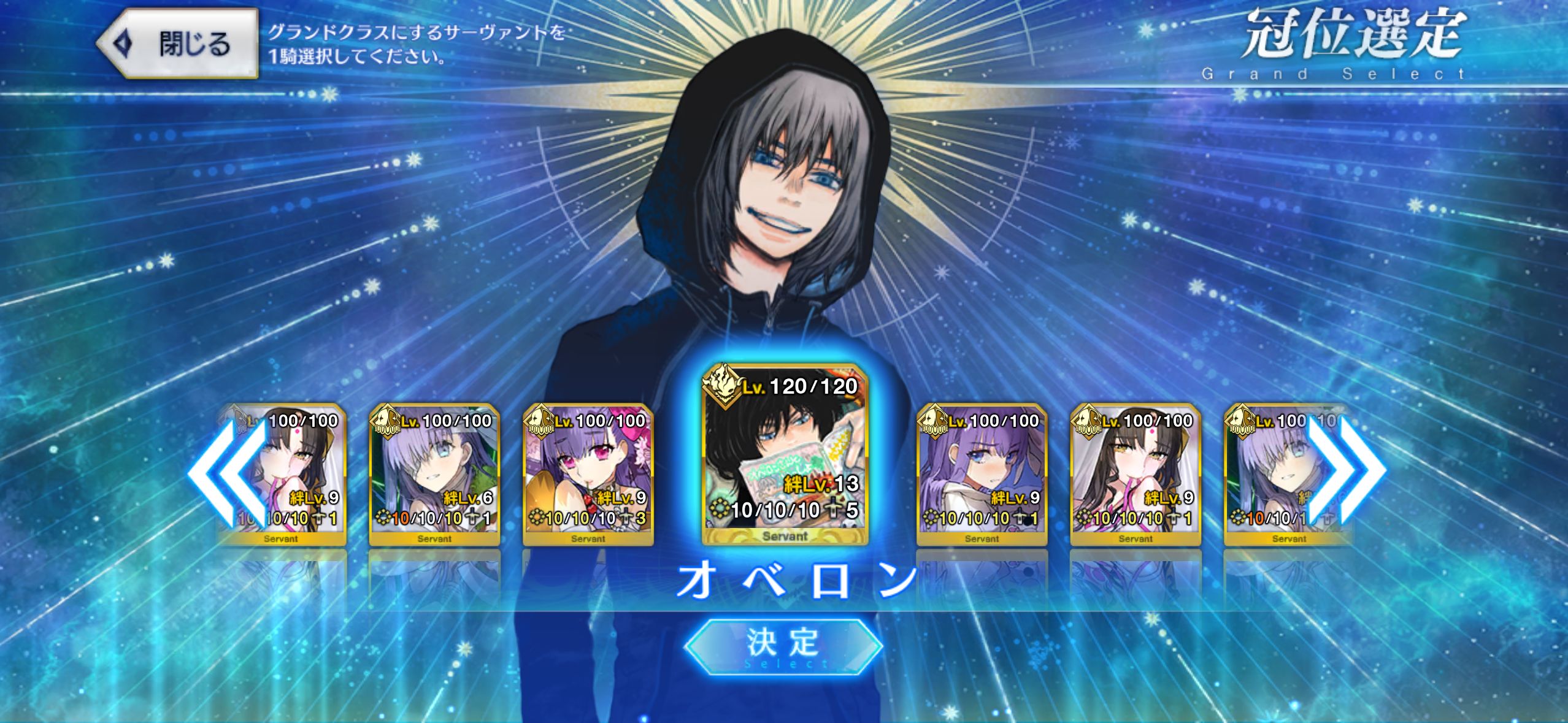 デスティニーで来てくれて宝具5になったオベロンさんに👑あげた、予定通り。マシュと巌窟王のEX1全体120組は月末の無料期間に交代でグランドなってもらおうかなって……
