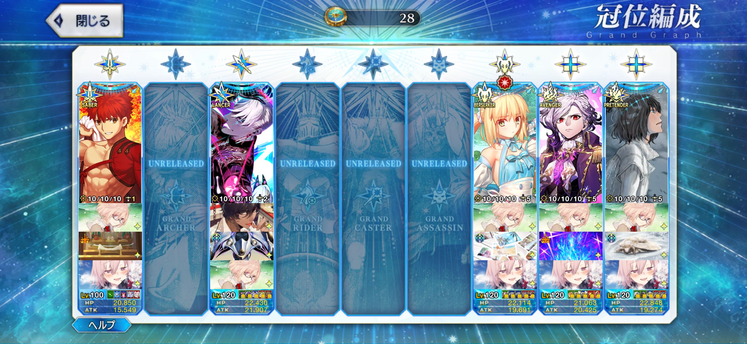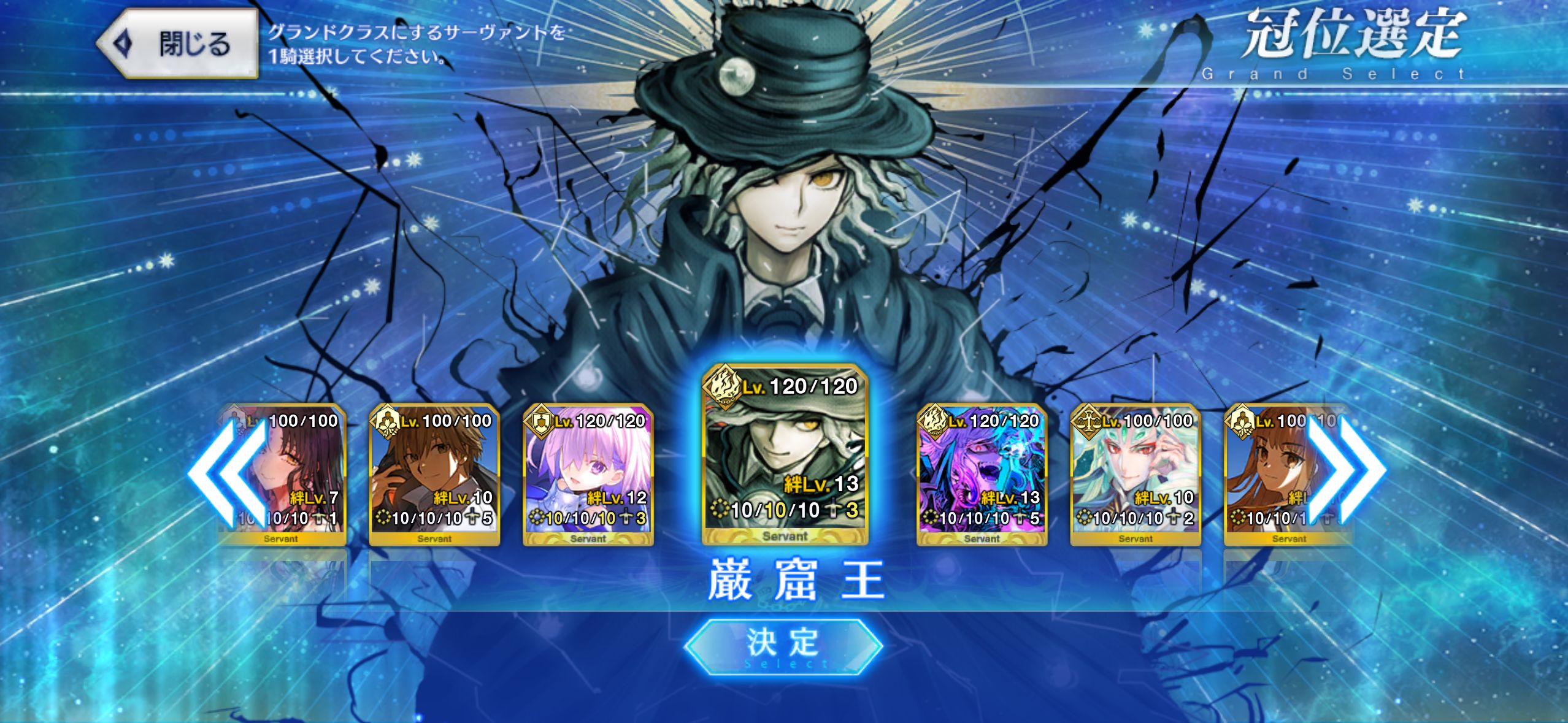 で今こう。何も考えずにⅠからグランド選定したらキャスとオベの間に巌窟王が挟まってしまい、並べてあげるべきだったかも……いやこれはこれで……(?)になってる。いい光景だ……