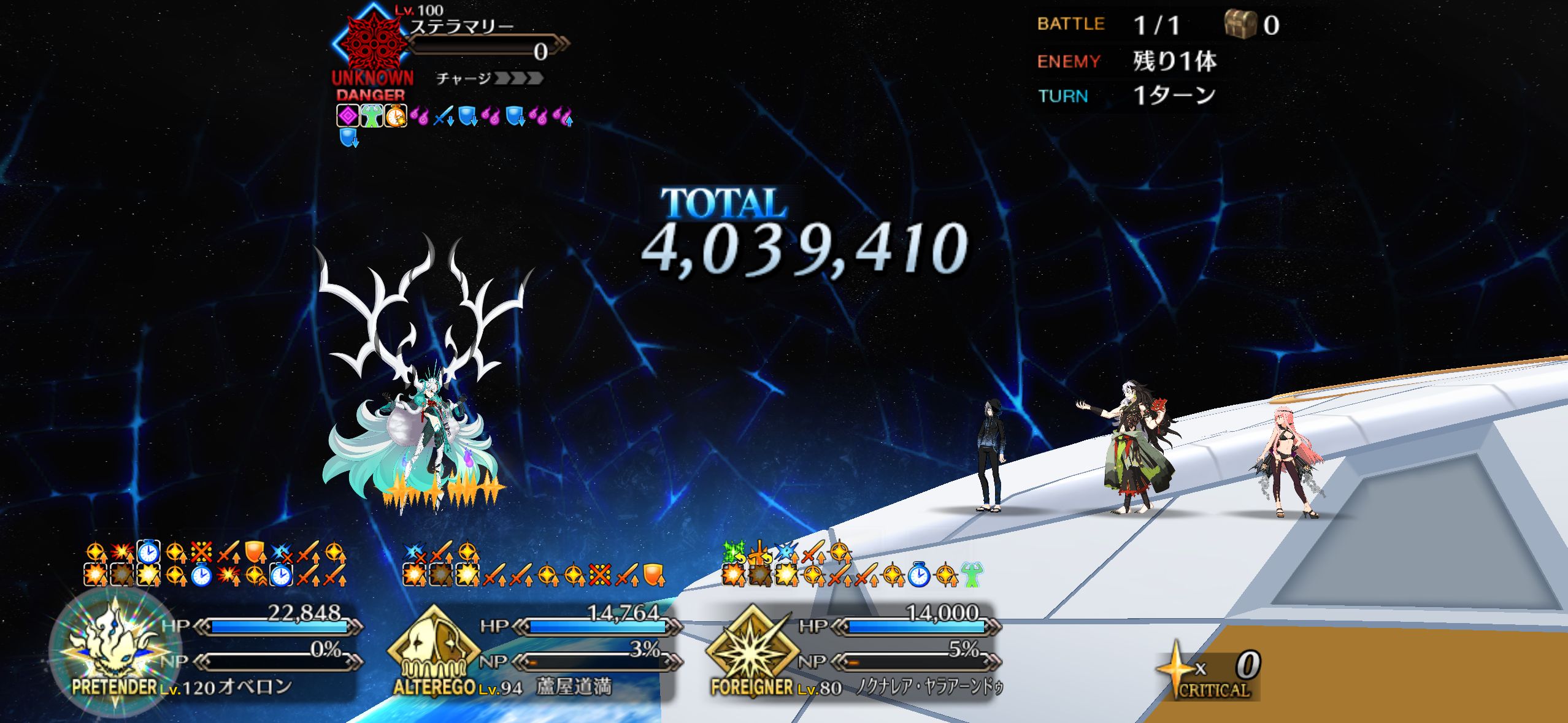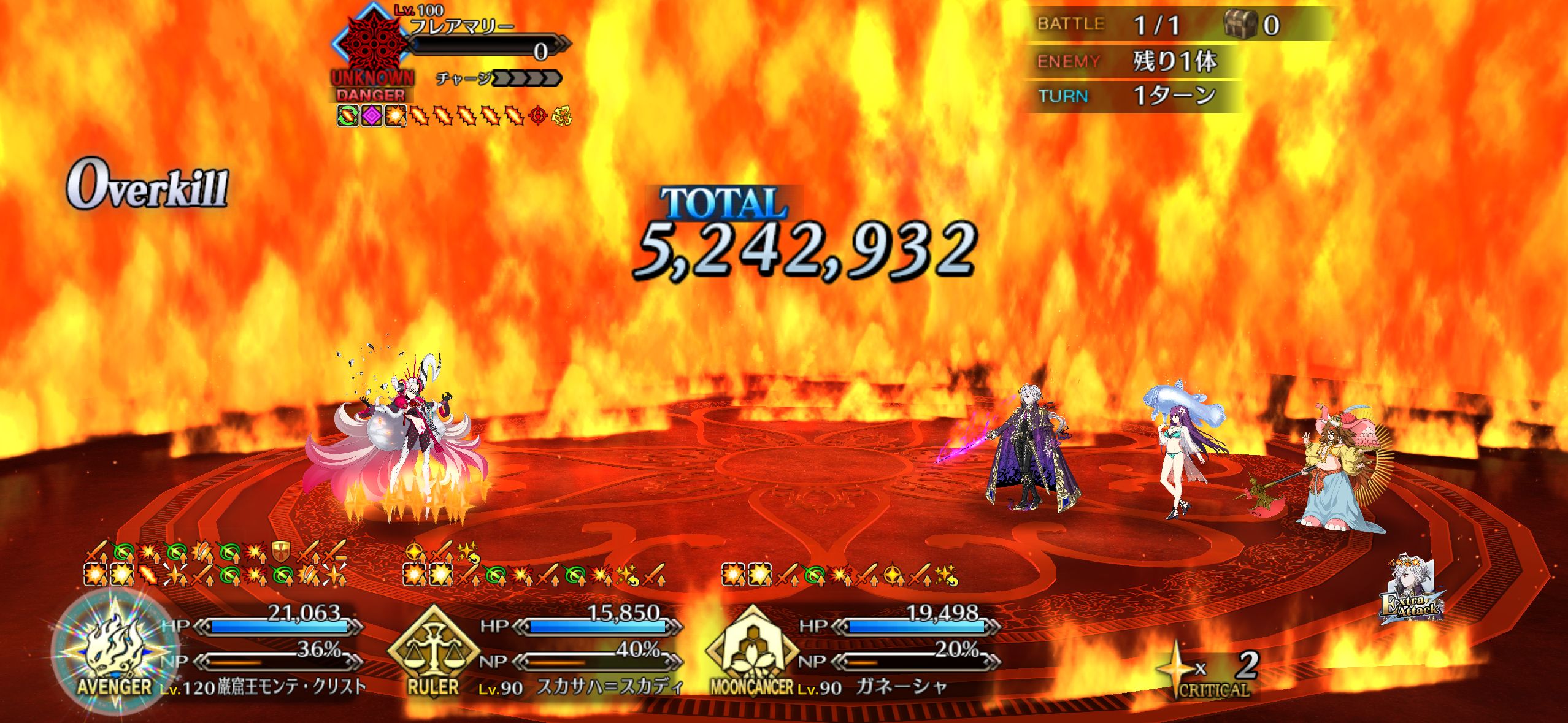 巌窟王とオベロンが死ぬほどフレポ稼いできてくれてる……し、通常とオススメサポートの水着キャスと巌窟王(決意)も借りられてるから、石1000個の力はすごいな……になってる