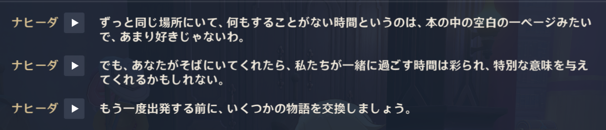 「でも、あなたがそばにいてくれたら、私たちが一緒に過ごす時間は彩られ、特別な意味を与えてくれるかもしれない」でえ!?(驚き)えへ……えへへ……(照れ・喜び)になった 苦手なものもあなたと一緒なら平気かもってそれって……つまり……きゃあ……!! ロマンス始めないで いやなんにしろやっぱ”ナヒーダ×わたし“……ですよね(涼やかな笑顔で)