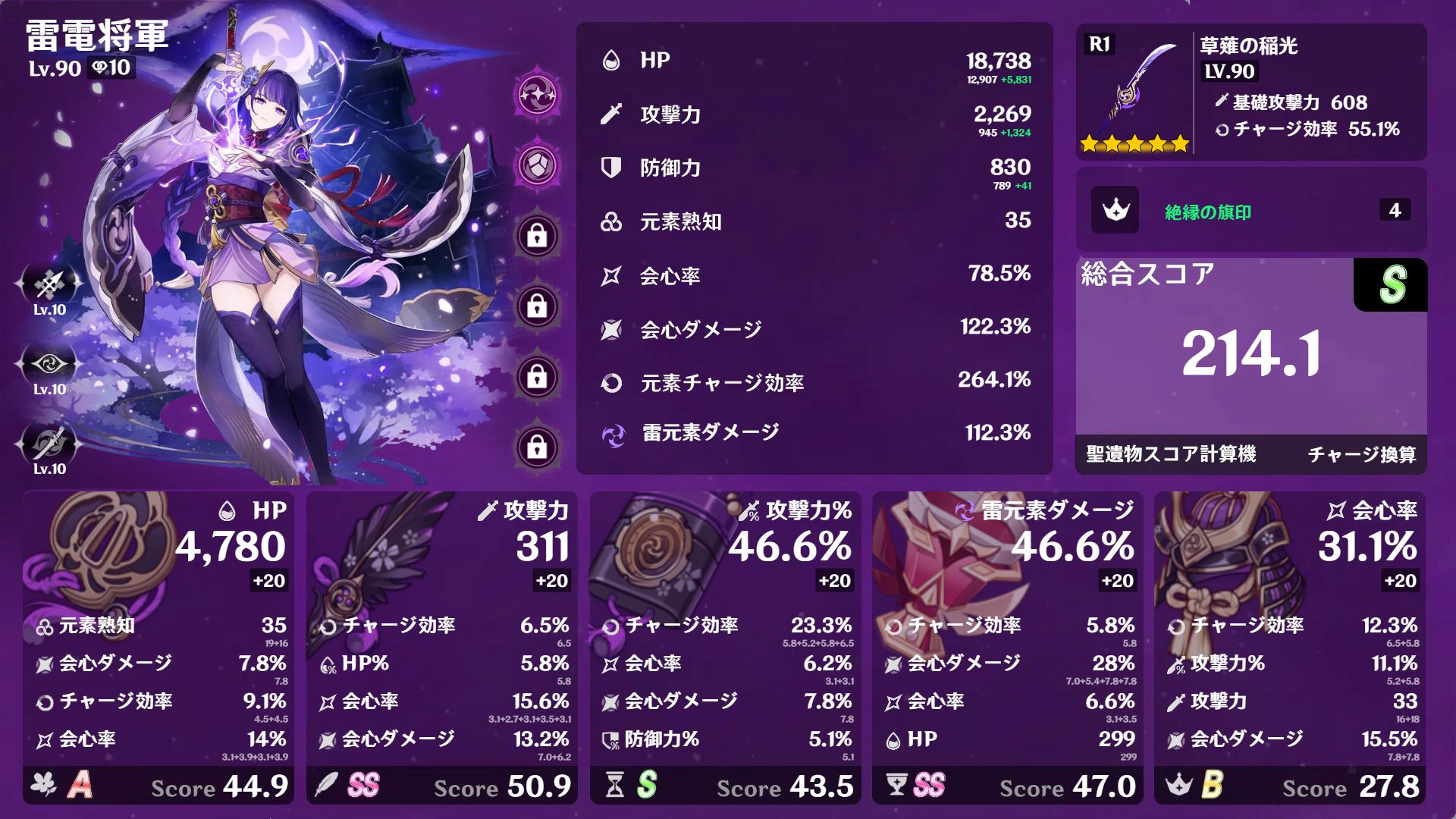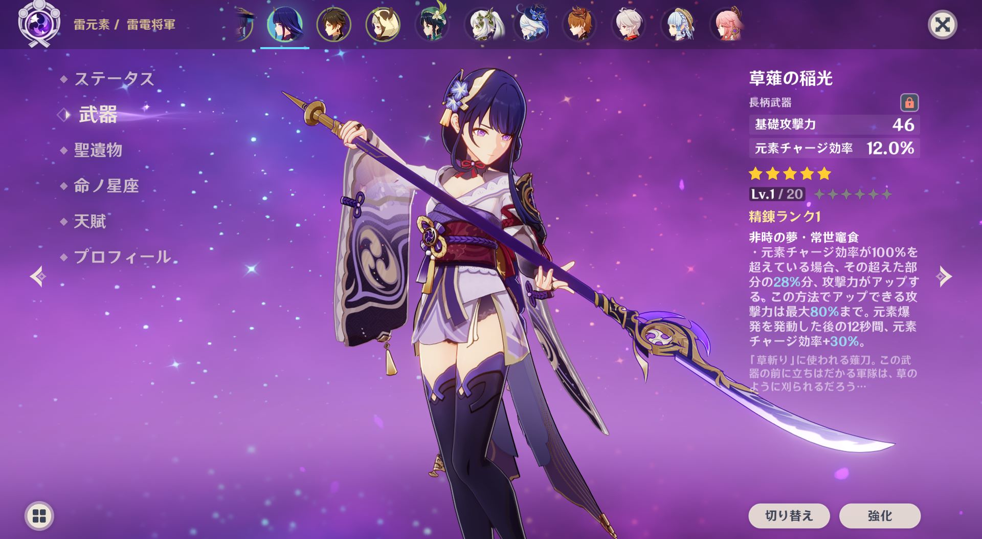 雷電将軍、攻撃1800率75ダメ140チャージ260くらい目指し……たいな……