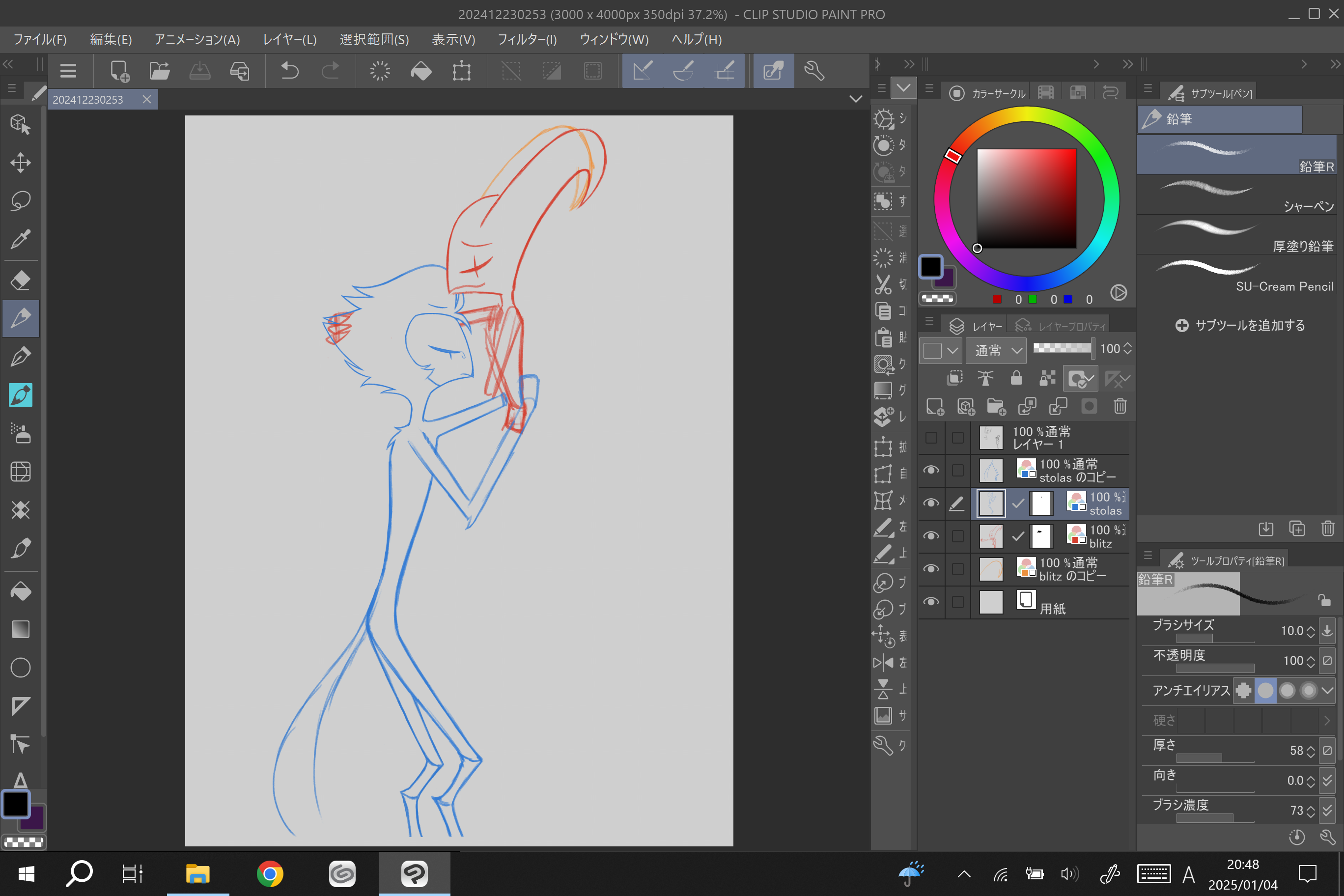カップリングの絵、明確にシチュエーションとかが発生するから描いたことのない体の向き……構図……になり、たいへん