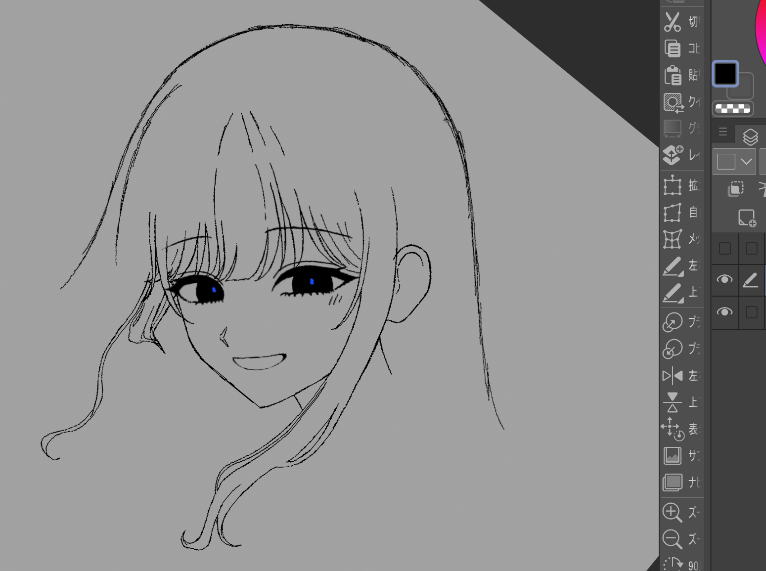 #oekaki これは難しいよ〜〜って言いながら描いてるルルイの絵。いっつも同じこと言ってるな。毛束以外スムーズに描けないから……
