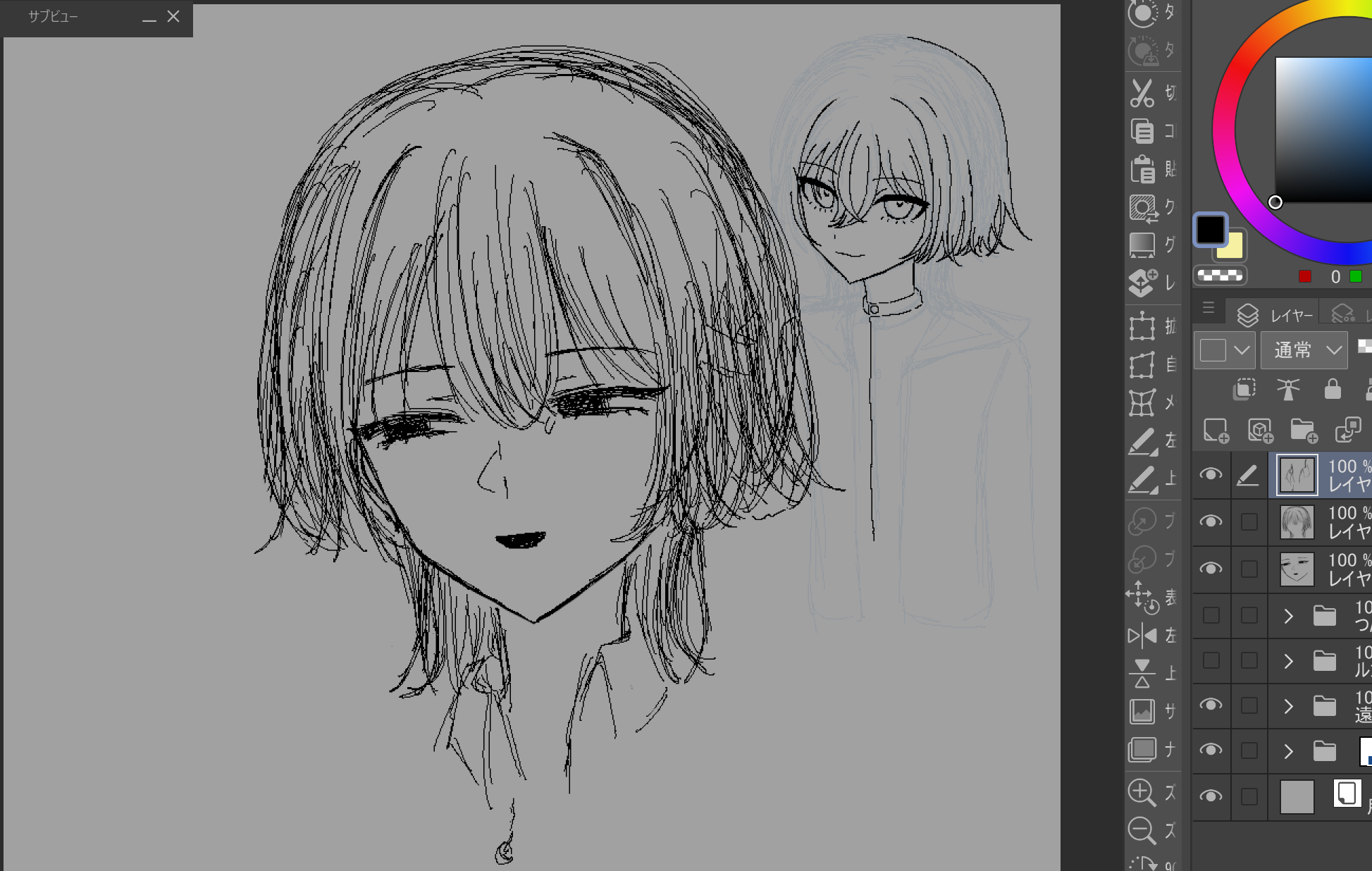 そもそも原神というか放浪者に出会うまでは創作キャラ及び夢主しか描いてこなかった……のを久しぶりにやって、OCは楽でいい……になってるよ。右上が初描きで全然顔違うけど別に気にならないしね。