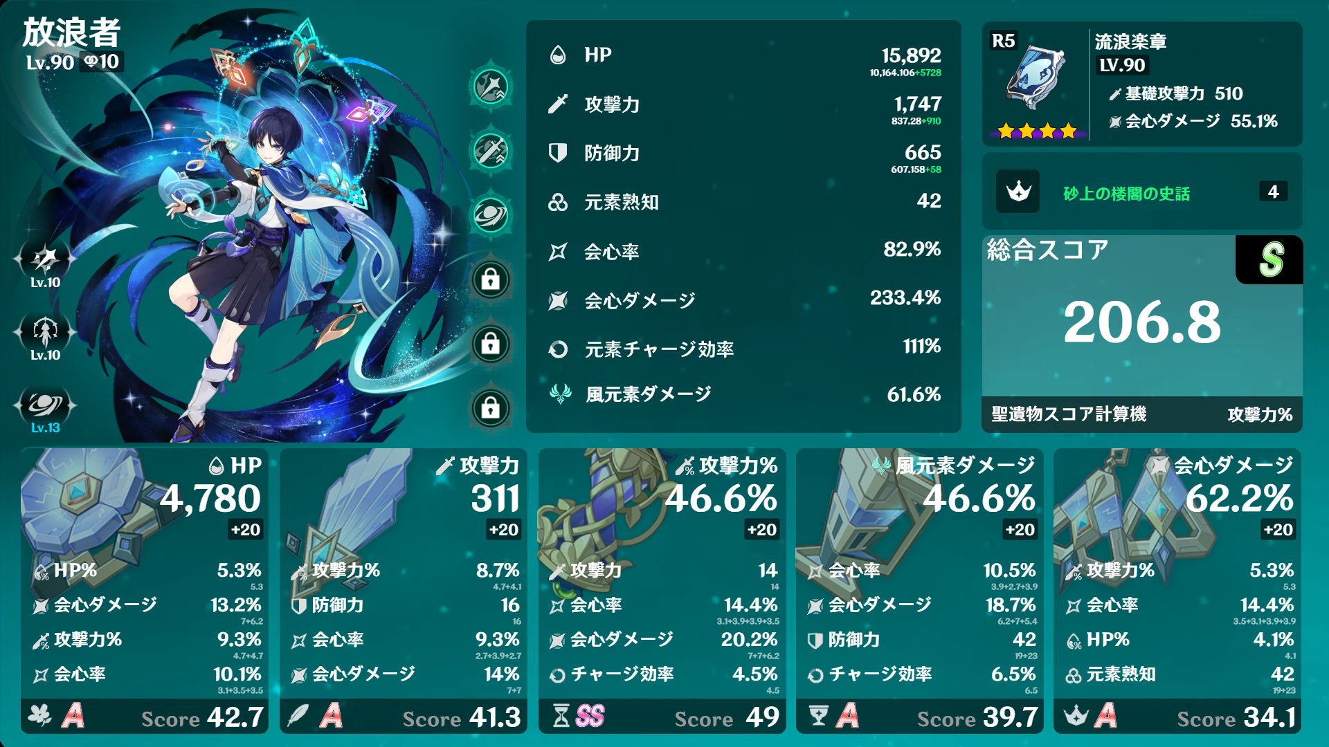 #genshin 砂上花更新できた! のでひとまず厳選が終わりました これ以上やるとなると4オプ始まり率ダメ5伸び狙いとかいう恐ろしいところに足を踏み入れなくてはならなくなるため……